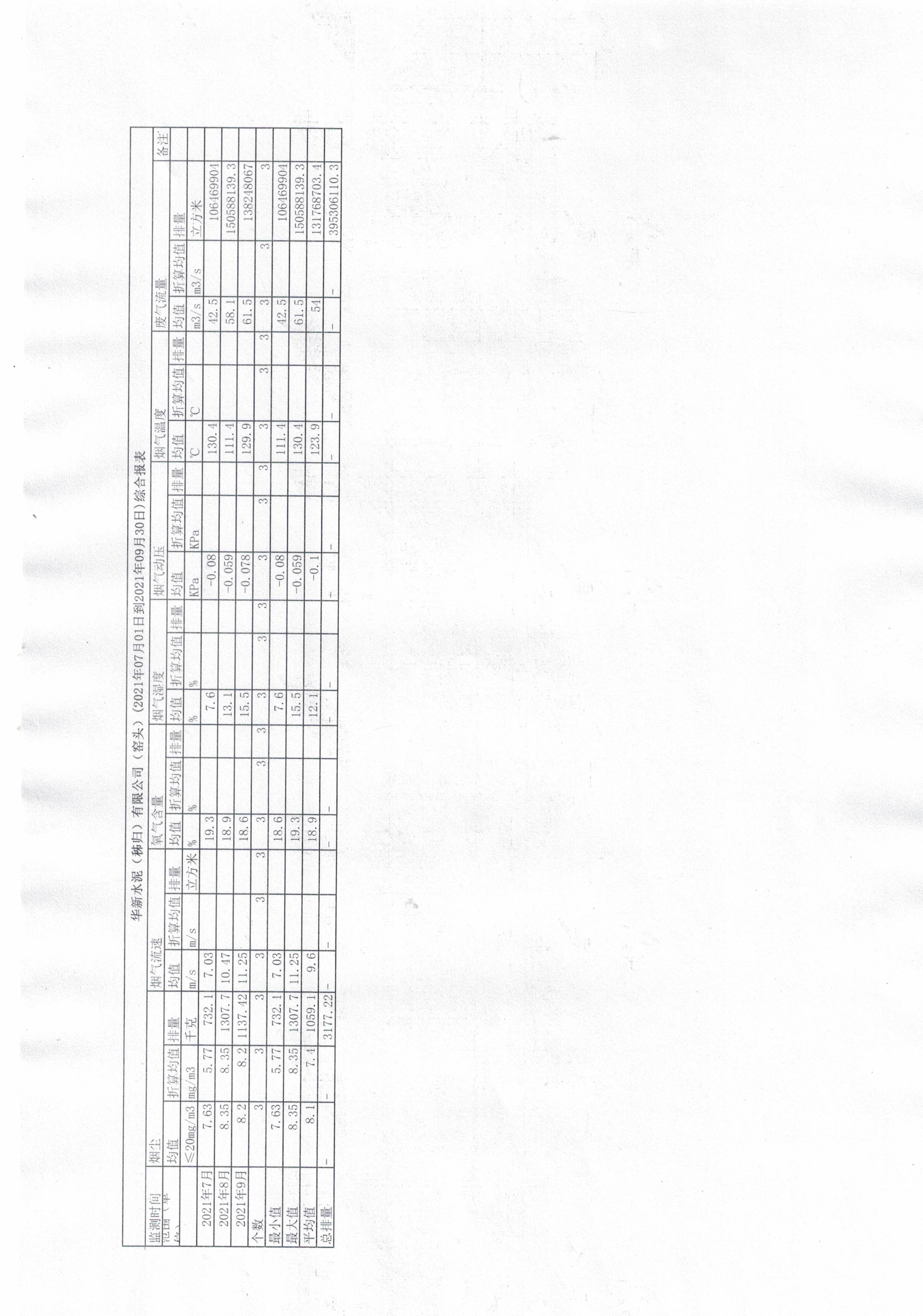 3.華新水泥(秭歸)有限公司-窯頭(2021年07月01日到2021年09月30日)綜合報(bào)表
