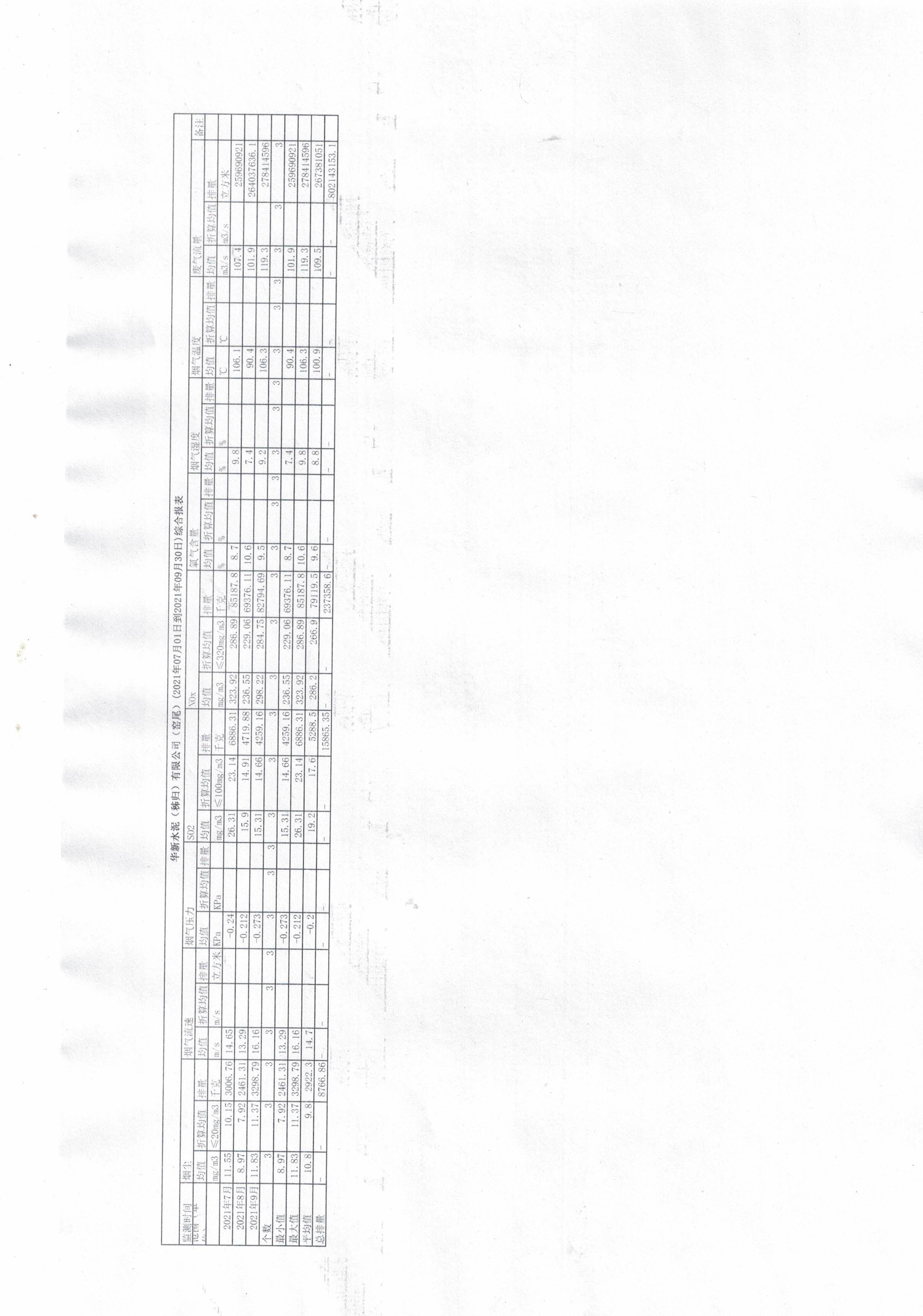 7.華新水泥(秭歸)有限公司-窯尾(2021年07月01日到2021年09月30日)綜合報(bào)表